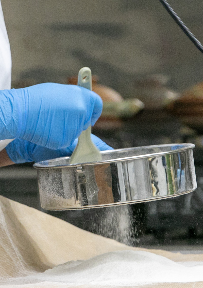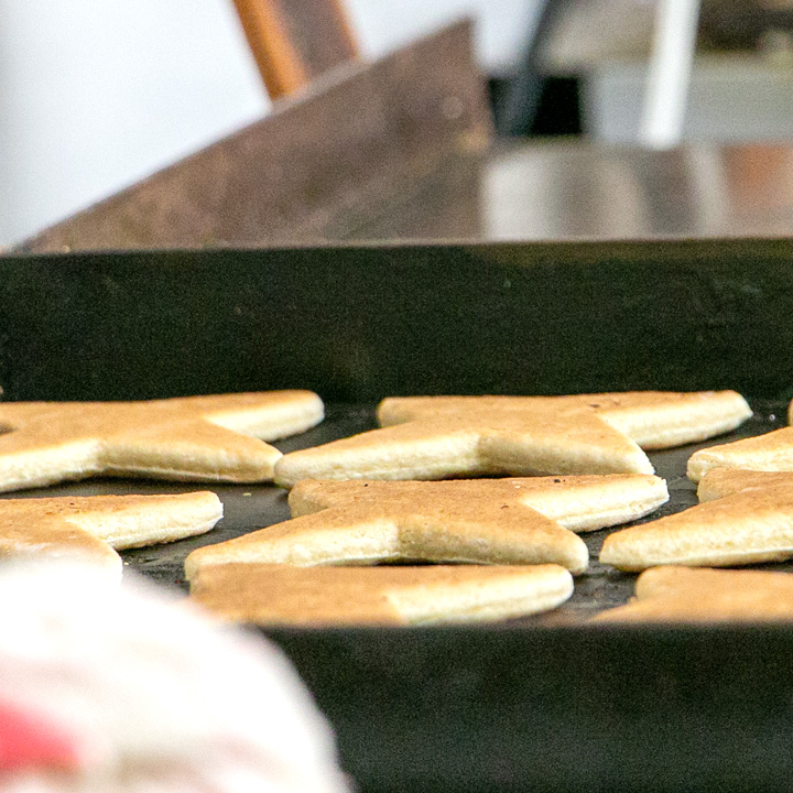 伝統菓子である堅焼きの製造を行います。材料の扱いから成形・焼成まで、工程を分けて丁寧に取り組みます。