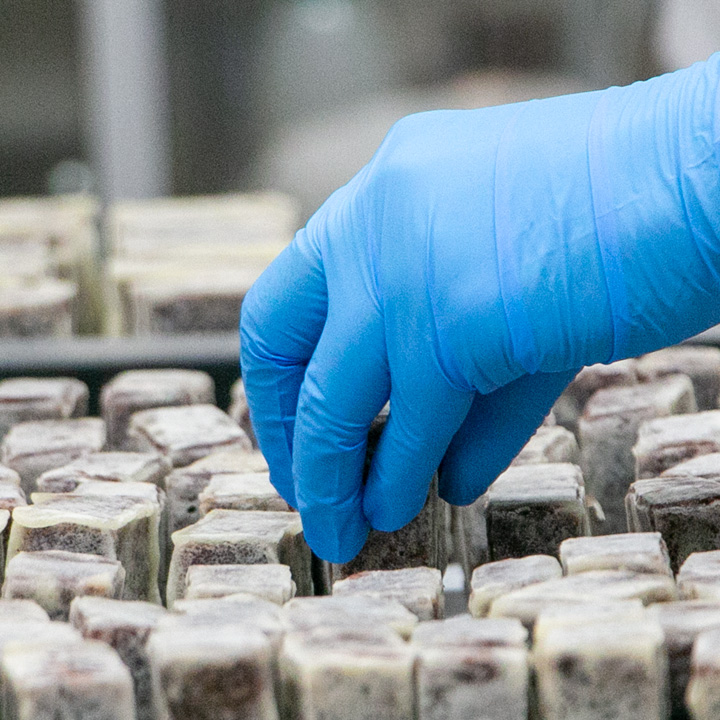 形づくりや焼き工程など、手作業を中心にきんつばを製造します。細かな工程を積み重ねながら品質を整えていきます。